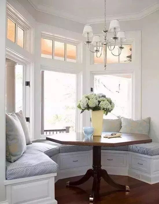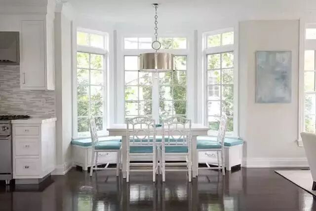 ▲飘窗餐厅可以做成多种形状,U型、L型、一字型的,只要加上桌子和吊灯,温馨的餐厅就改造成功了。