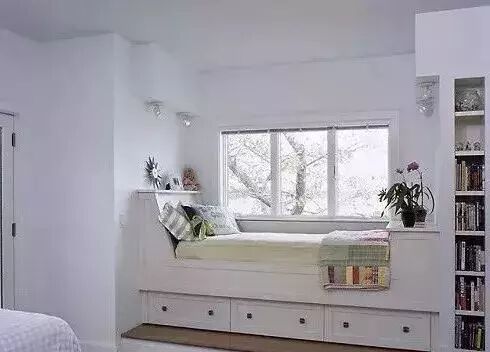 在家里,床无疑是很占空间的,但利用好飘窗就可以省下很多位置,让剩余空间得到更好的利用。
